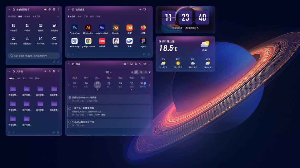 • 桌面組件自由搭配,重要事項(xiàng)一目了然